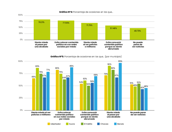 “El contexto poselectoral también ha conllevado una serie de reacciones en las que el caraqueño promedio siente miedo en las alcabalas y al ver a policías o militares, evita tanto poner contenido político en sus redes cómo consumirlo”,