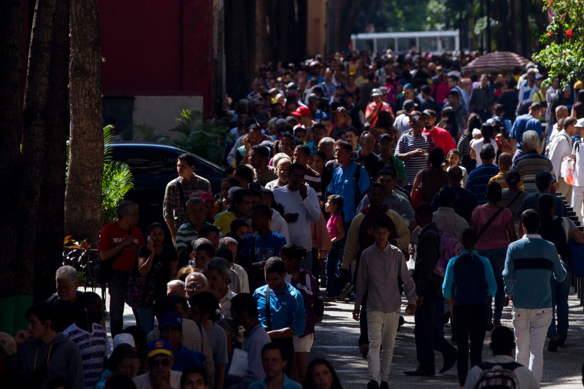 La cola para depositar ocupaba 18 cuadras. La formación se extendía por las calles paralelas a la avenida Urdaneta, seguía por el bulevar Panteón, bordeaba el Ministerio de Educación, bajaba por la plaza del BCV y seguía hasta un lateral del Banco, donde estaban los funcionarios del instituto emisor junto con los efectivos.