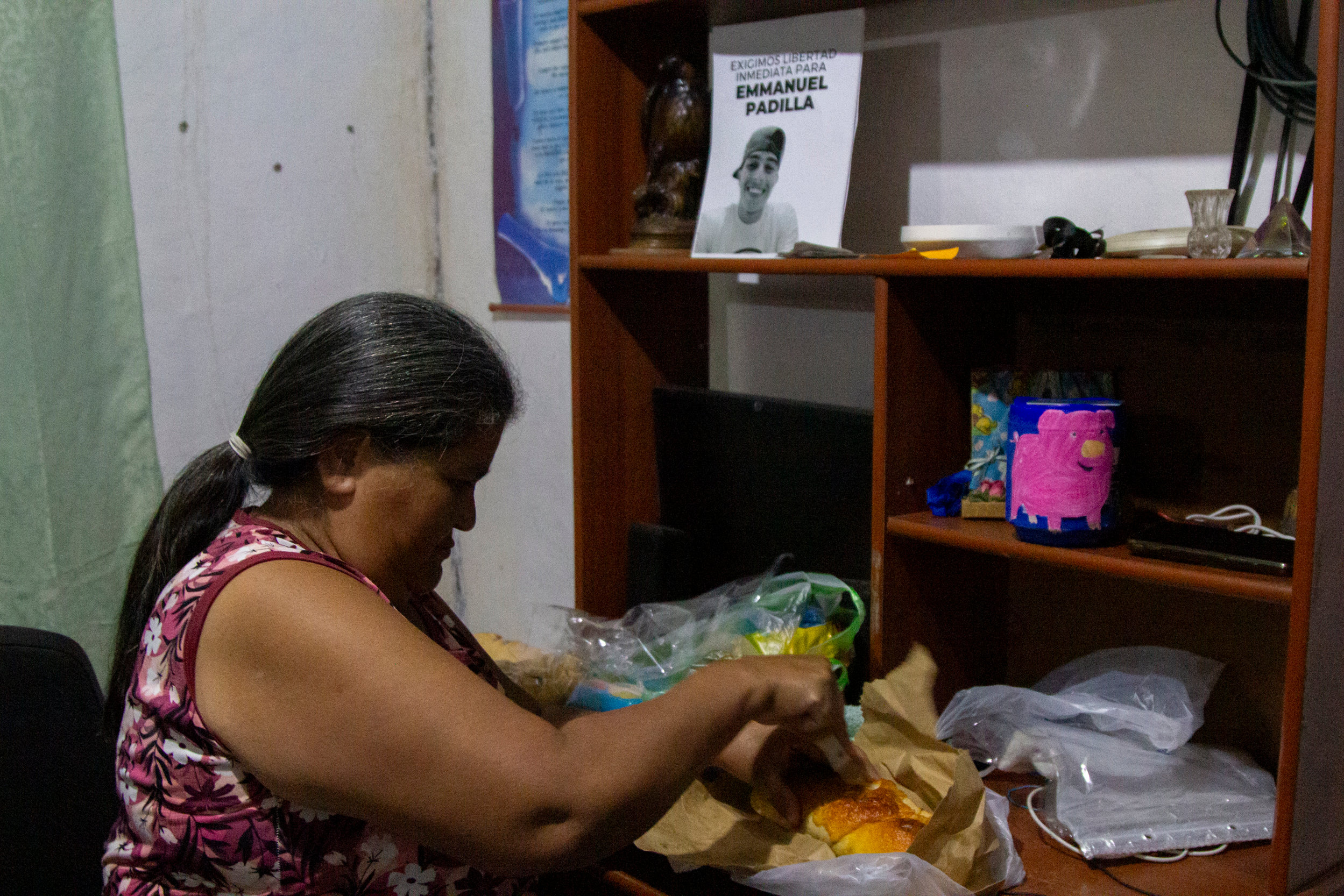 Entre arreglos de bolsitas y bolsas, de la comida de todos los que viven en casa y siguen su rutina, pese a la preocupación por Enmanuel, a Belkys le da más de la medianoche aturdida por los recuerdos y la preocupación. Tiene que despertarse a las 3:00 am para poder alistarse para salir a la cárcel.