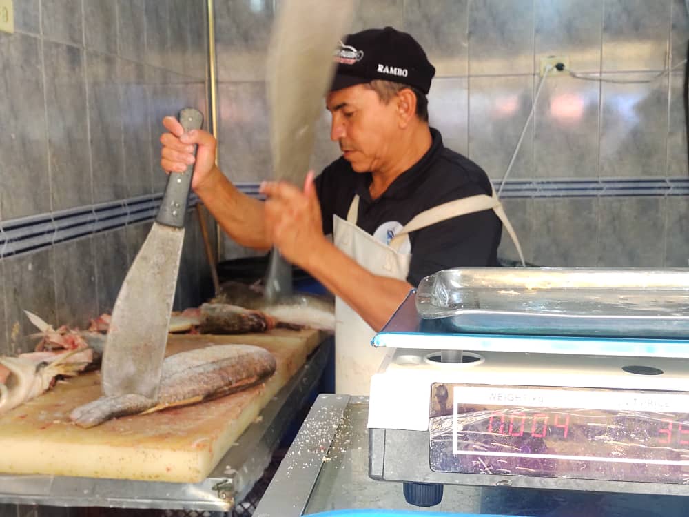 “Siempre compro cazón porque es un pescado que rinde. El mes pasado me costó $6 el kilo aquí en Quinta Crespo y ya está en $7. Antes cuando Venezuela era otra uno comía mero, salmón, pargo rosado, pero ya esos pescados son prohibidos para el bolsillo”.