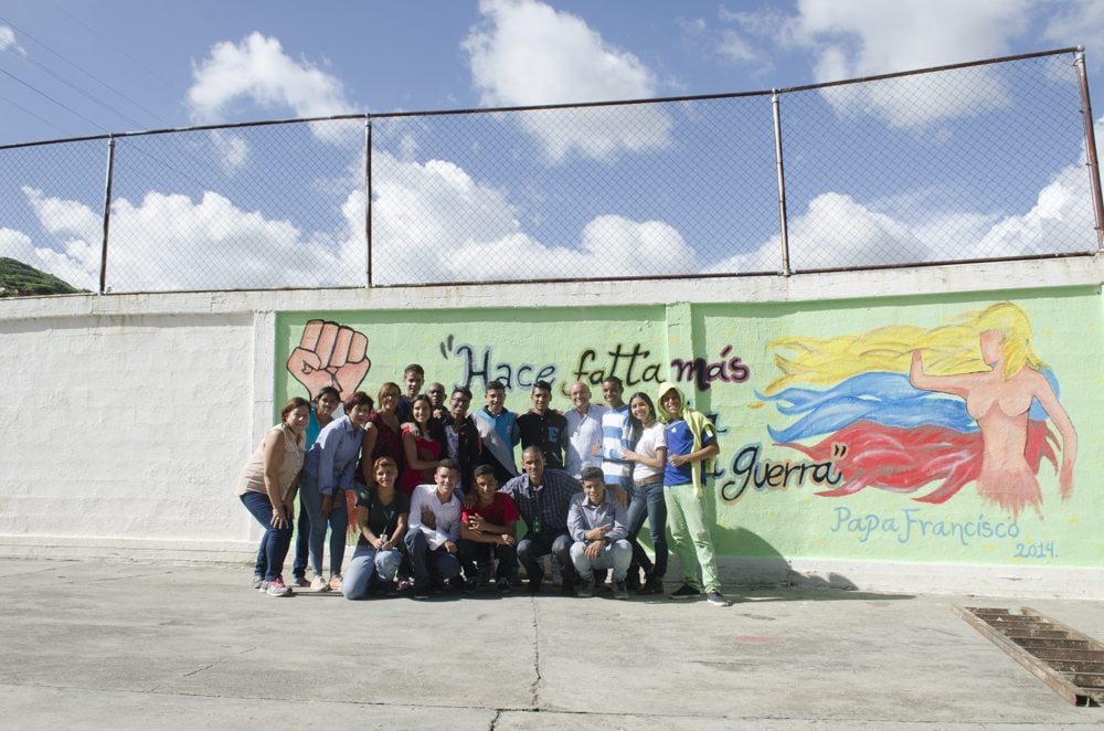 Caracas. “Hace falta más coraje para la paz que para la guerra“, el mensaje que el Papa Francisco diera el 8 de junio del 2014 a representantes de dos naciones en conflicto al suroeste de Asia, fue seleccionado por alumnos, padres y representantes de la Escuela Técnica Industrial San José Obrero, Fe y Alegría (ETI) para plasmarlo en la pared blanca que bordea este plantel del sector Matapalo, en la parroquia Antímano.