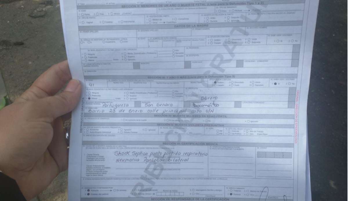 En el acta de defunción que cargaba la madre de Wiston reseñaban que las causas de muerte se debían a un edema cerebral severo, desnutrición hipocalórica y Síndrome de Inmunodeficiencia Adquirida (SIDA).