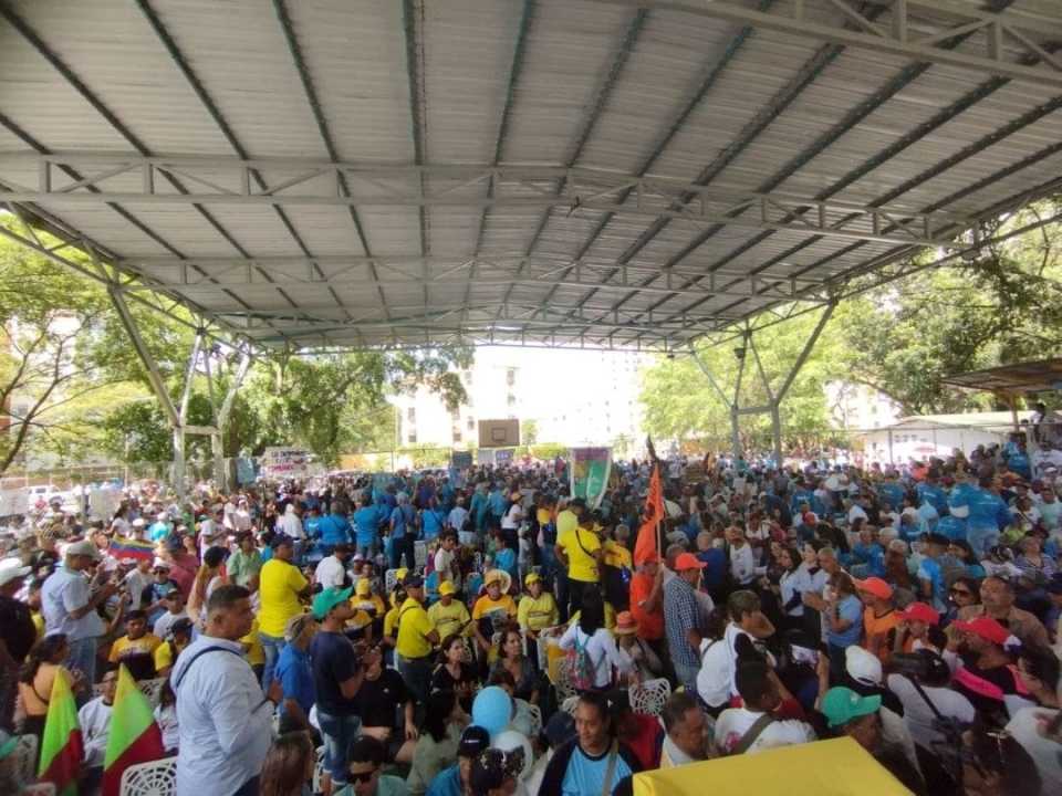 La cancha deportiva de la comunidad, zona muy identificada con la oposición, fue el punto de encuentro del aspirante presidencial con los partidos políticos, gremios y sociedad civil. Cientos de personas estuvieron desde las 8:30 a. m. en el sector, cuando la actividad estaba pautada para las 10:00 a. m.