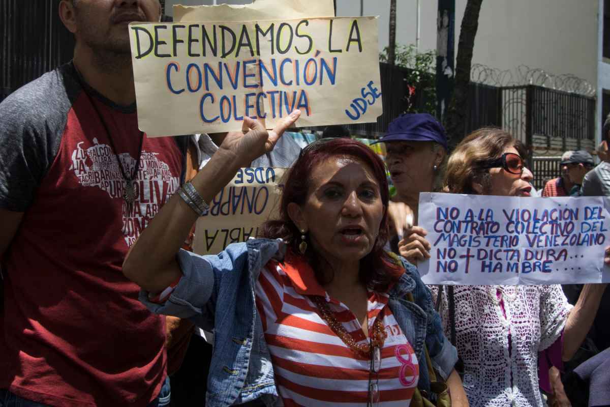 A propósito de ello, este miércoles los principales gremios del país se concentraron en las inmediaciones del Ministerio del Trabajo, en Plaza Caracas, para repudiar la supresión de las cláusulas establecidas en las convenciones colectivas. Pablo Zambrano, secretario ejecutivo de la Federación de Trabajadores de la Salud (Fetrasalud), al igual que la dirigencia sindical de Cantv, Corpoelec y del magisterio, resienten la eliminación de las primas de protección familiar, por especialidad y transporte, tres beneficios contractuales que en otros años costaron el desvelo de los empleados públicos.