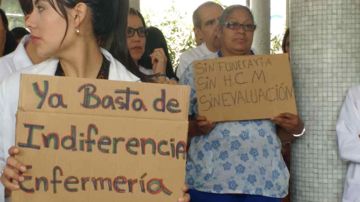 Este martes, en horas de la mañana, el Colegio de Enfermería del Distrito Capital, en compañía de la Federación De Trabajadores de la Salud, del Colegio de Bionalistas y de la Federación Farmacéutica Venezolana, lideró una asamblea desarrollada en el pasillo de la puerta “de los médicos” del HCUC.