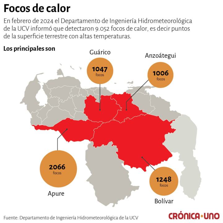 Solo entre enero y febrero de 2024, el Observatorio Terrestre de la Nasa (Modis) detectó 9000 incidentes ocurridos en importantes reservas forestales y parques nacionales de los estados Zulia, Bolívar, Aragua, Monagas y Anzoátegui.