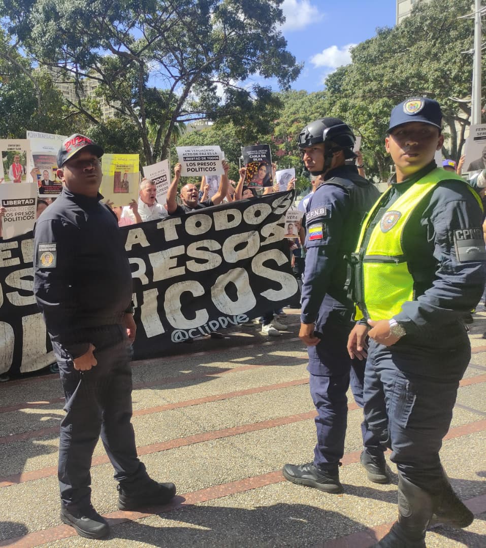 En la sede de la Policía Nacional Bolivariana, en Boleíta, los familiares denuncian amedrentamiento de los funcionarios, quienes intentan desmovilizarlos. A pesar de ello mantienen la protesta pacífica para exigir información sobre sus seres queridos y el respeto a sus derechos.