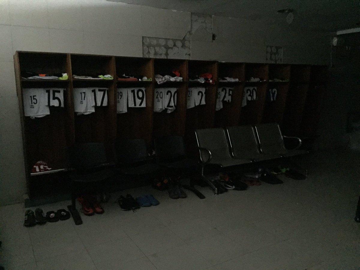 La oscuridad del camerino visitante era tal que los jugadores del elenco capitalino optaron por salir al pasillo del recinto para aprovechar la luz del día y acondicionarse como mejor pudieran ante la inminencia del pitazo inicial de un partido casi sin público y con la mínima presencia policial requerida.