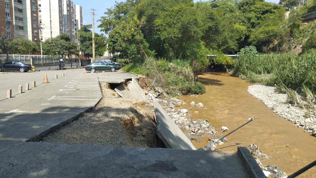 Guarenas. En las residencias Tajalí de la urbanización La Vaquera, en Guarenas, desaparecieron 14 puestos de estacionamiento como consecuencia de la crecida del río Guarenas tras las intensas lluvias que cayeron en la zona, durante la noche del lunes 2 de septiembre.