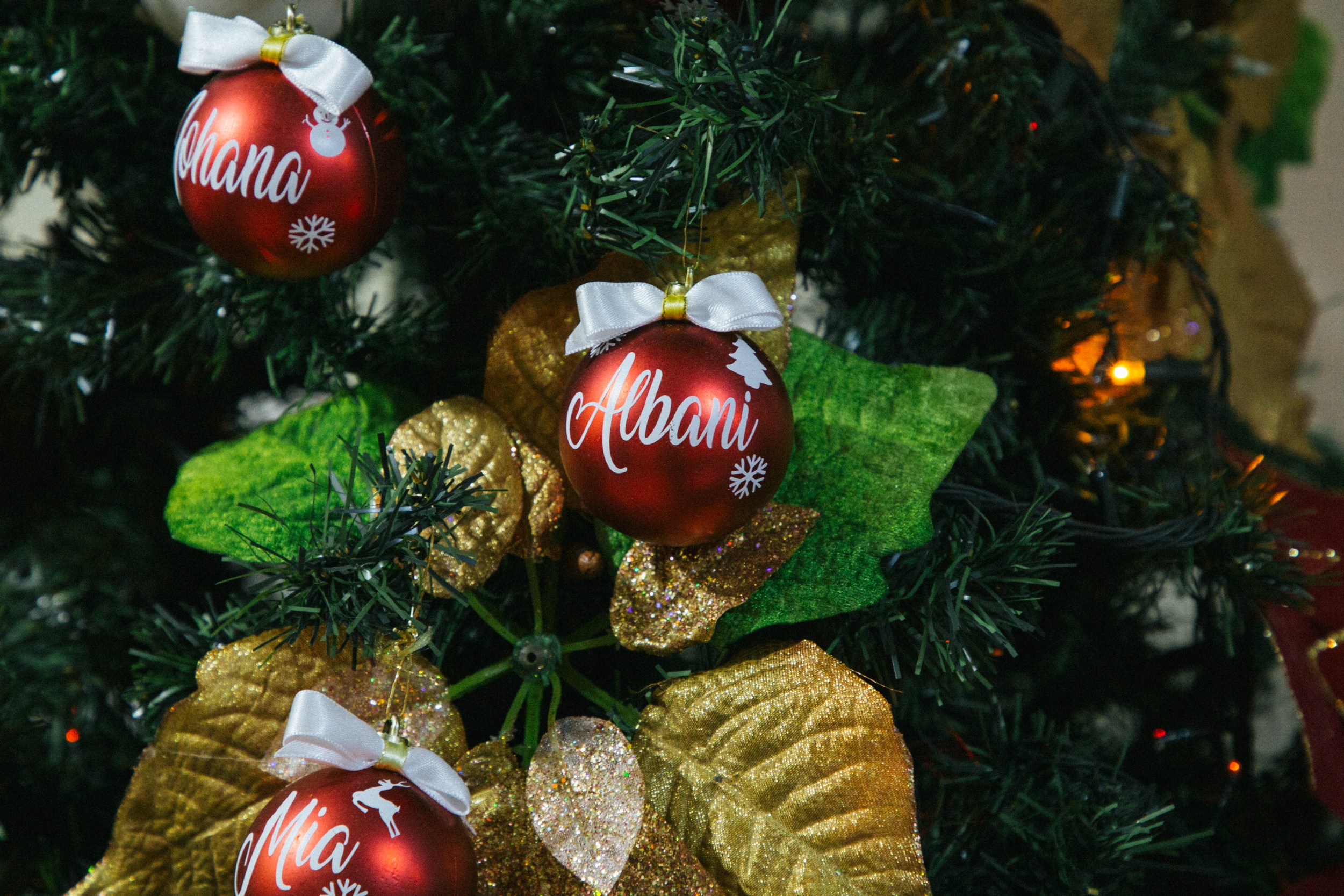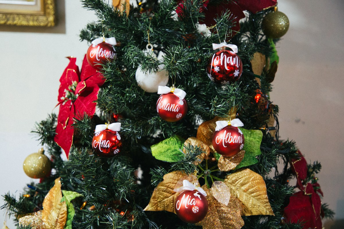 Lo único relativamente nuevo en el árbol son unas bambalinas rojas decoradas con los nombres de todos los integrantes de la familia. Estas bolas ya tienen un año en su casa. Fueron un regalo de su hija mayor, quien tiene un emprendimiento de detalles personalizados.