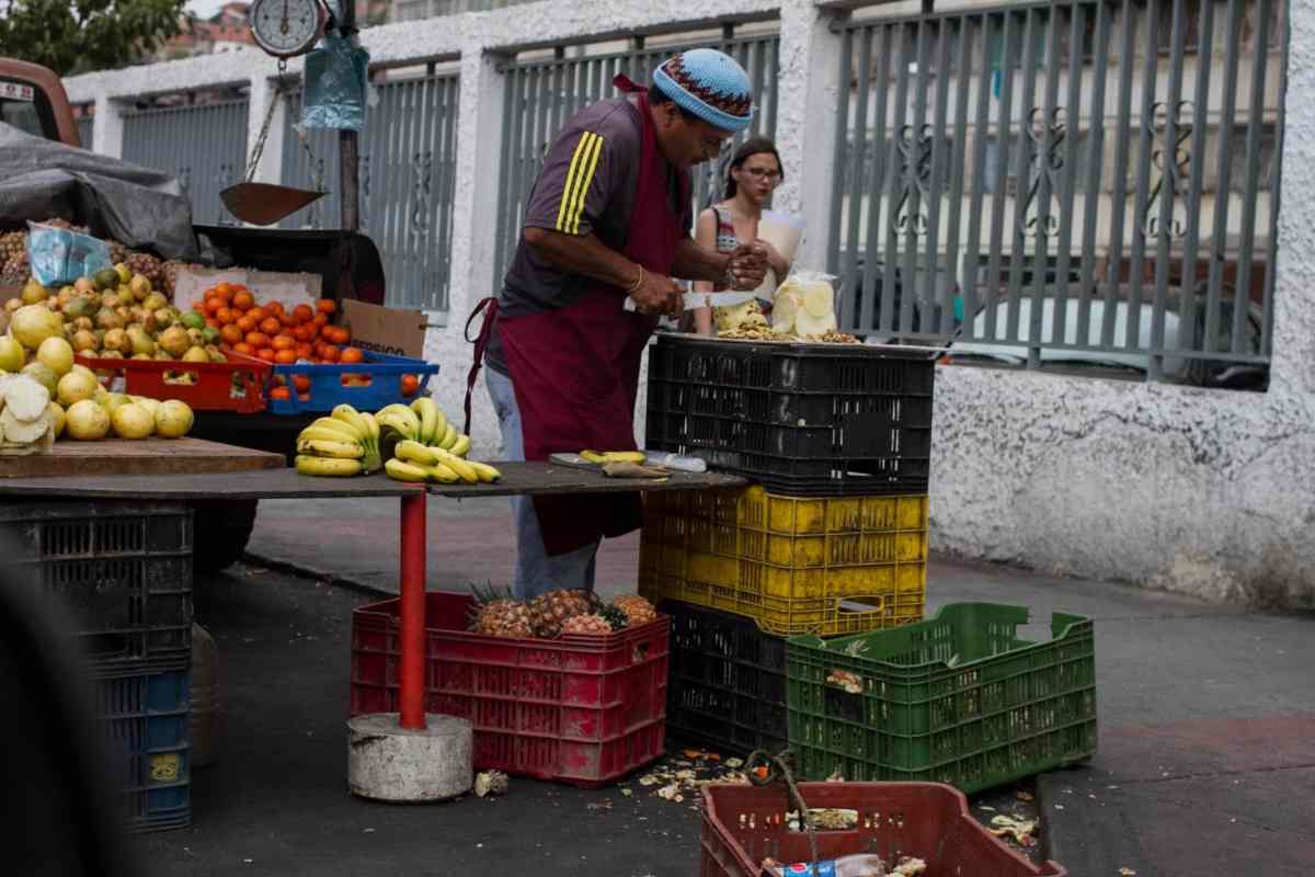 Según José Sousa, frutero de Quinta Crespo, “la venta de lo que cuesta más de 100.000 bolívares mermó más de la mitad”. Agrega que “las frutas las están dejando de último. La gente compra primero arroz, harina, pasta, queso y rubros similares antes que la fruta”.