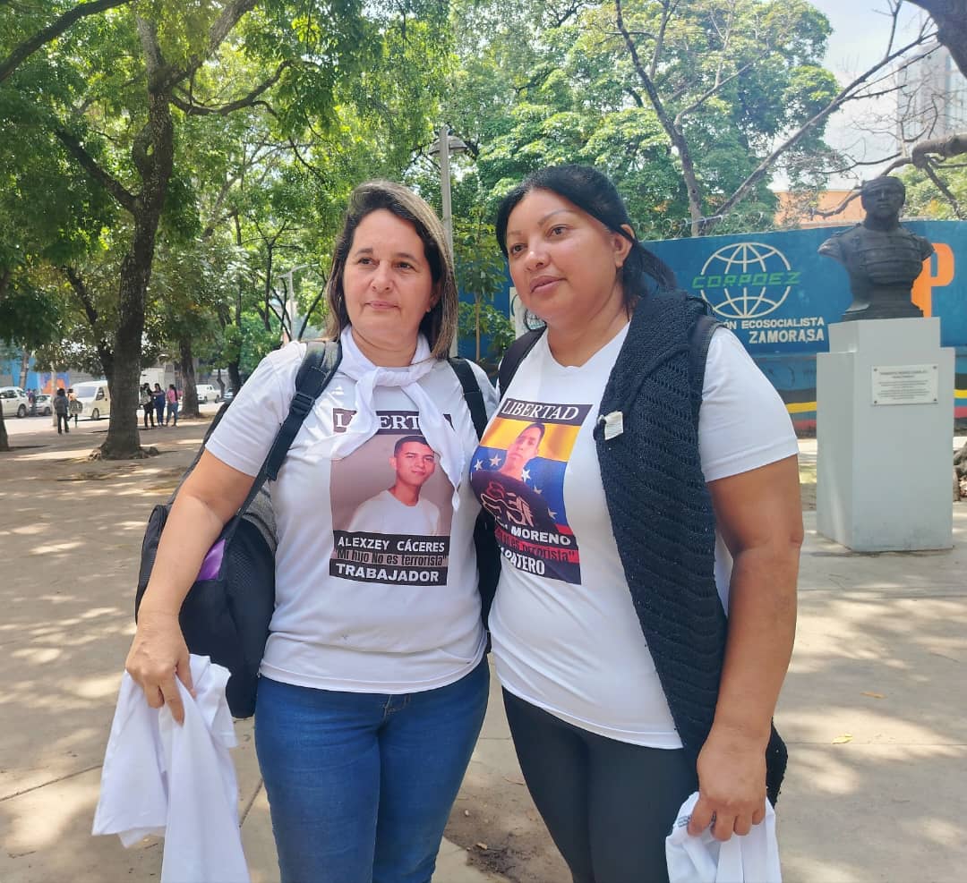 Con sus franelas que muestran las fotografías de sus hijos a color y los oficios de cada uno, las tres mujeres acudieron a la convocatoria hecha por el Comité para la Libertad de Presos Políticos (Clipp), frente al Ministerio Público, en plaza de Parque Carabobo.