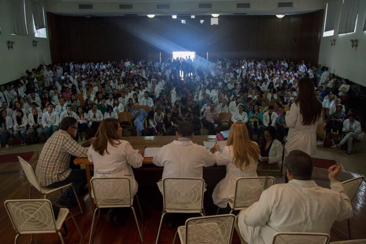 Ya la asamblea tenía media hora de haber sido instalada por las organizaciones Médicos por Venezuela y Médicos Unidos de Venezuela. El auditorio estaba repleto, pues la convocatoria no era para ofrecer más diagnósticos sobre cómo están los centros de salud, sino para plantear las acciones y crear una agenda de trabajo en la que se incluya exigir al Ministerio para la Salud que garantice el derecho fundamental que se expone desde el mismo nombre de ese despacho.