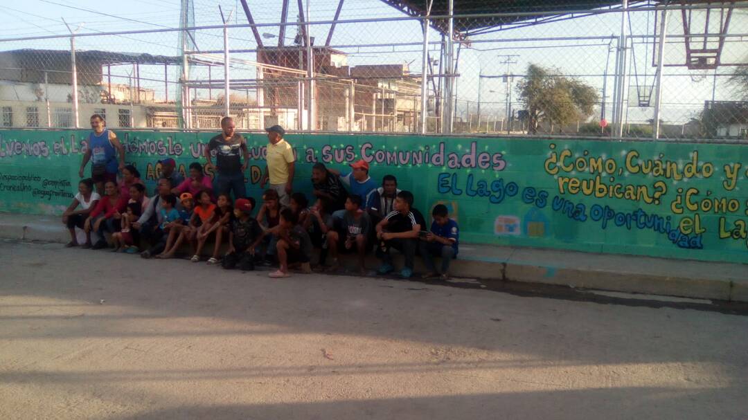 Los niños David Díaz, Anyerson Betancourt, Yolismar Betancourt, Miguel Fernández, Isabel Fernández, Genesis Blanco, Jainoa Navas, Luz Perales estuvieron atentos a las instrucciones de la muralista. Expresaron alegría porque fueron tomados en cuenta para plasmar en la pared un problema que les preocupa. Todos están conscientes del riesgo que corren ellos y sus familias al vivir a orillas del Lago.