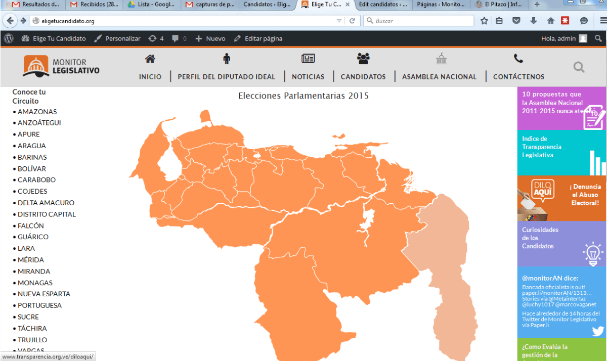 Caracas. A partir de hoy los ciudadanos podrán obtener información importante sobre candidatos al parlamento a través Eligetucandidato.org, la web de Monitor Legislativo. Los usuarios pueden denunciar abusos de esos aspirantes e información interesante sobre la utilidad de la Asamblea Nacional.