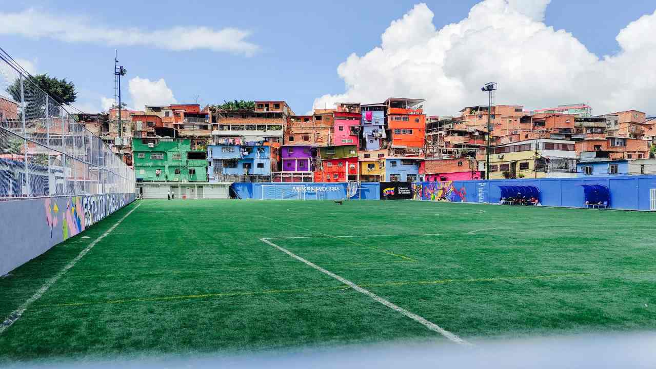 En la parroquia 23 de Enero, también al oeste de la ciudad, una cancha de fútbol sigue en trabajos de remodelación desde antes de la elección presidencial.