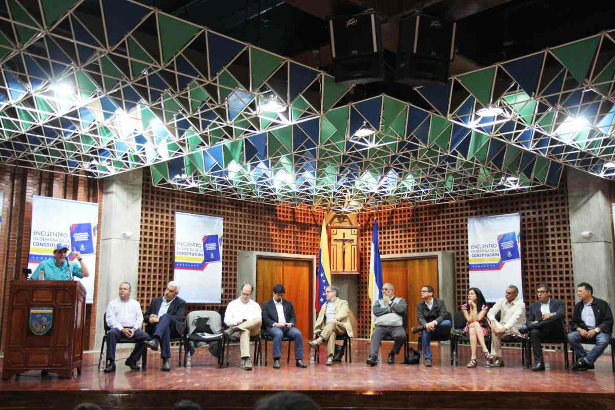 En el foro “Encuentro en Defensa de la Constitución” organizado por la Universidad Católica Andrés Bello (UCAB) participaron el presidente de la Asamblea Nacional, Julio Borges; el primer vicepresidente del Parlamento, Freddy Guevara; el gobernador del estado Miranda, Henrique Capriles; el ex ministro de Interior, Miguel Rodríguez Torres; la ex defensora del Pueblo, Gabriela Ramírez; los diputados Eustoquio Contreras y German Ferrer, los politólogos Ángel Oropeza y Nicmer Evans, y Luis Lander del Observatorio Electoral Venezolano.