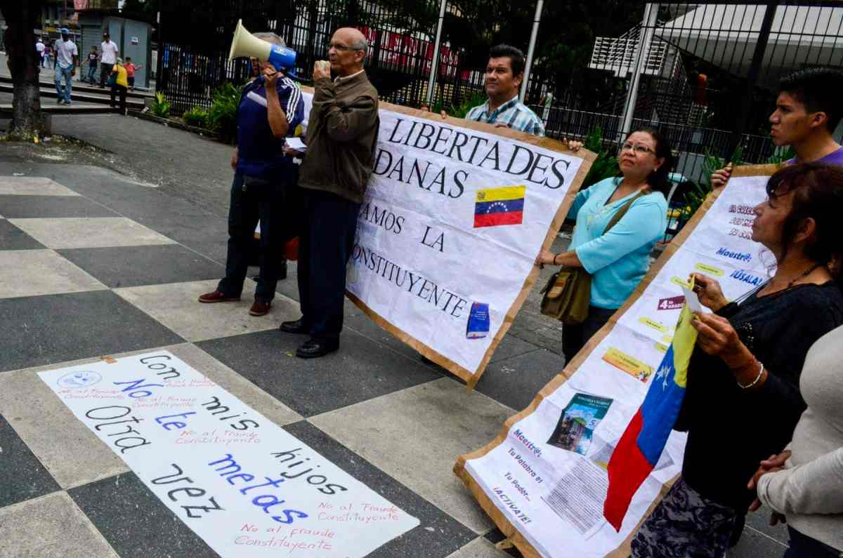 Caracas. La plaza Brión de Chacaíto fue el salón de clases la mañana de este jueves. Un grupo de profesores de distintas áreas, con pancartas, consignas y un megáfono se pararon en la concurrida plaza de la capital, para decirle a la gente que “la Asamblea Nacional Constituyente representa una amenaza para la población, el futuro y el destino de Venezuela”.