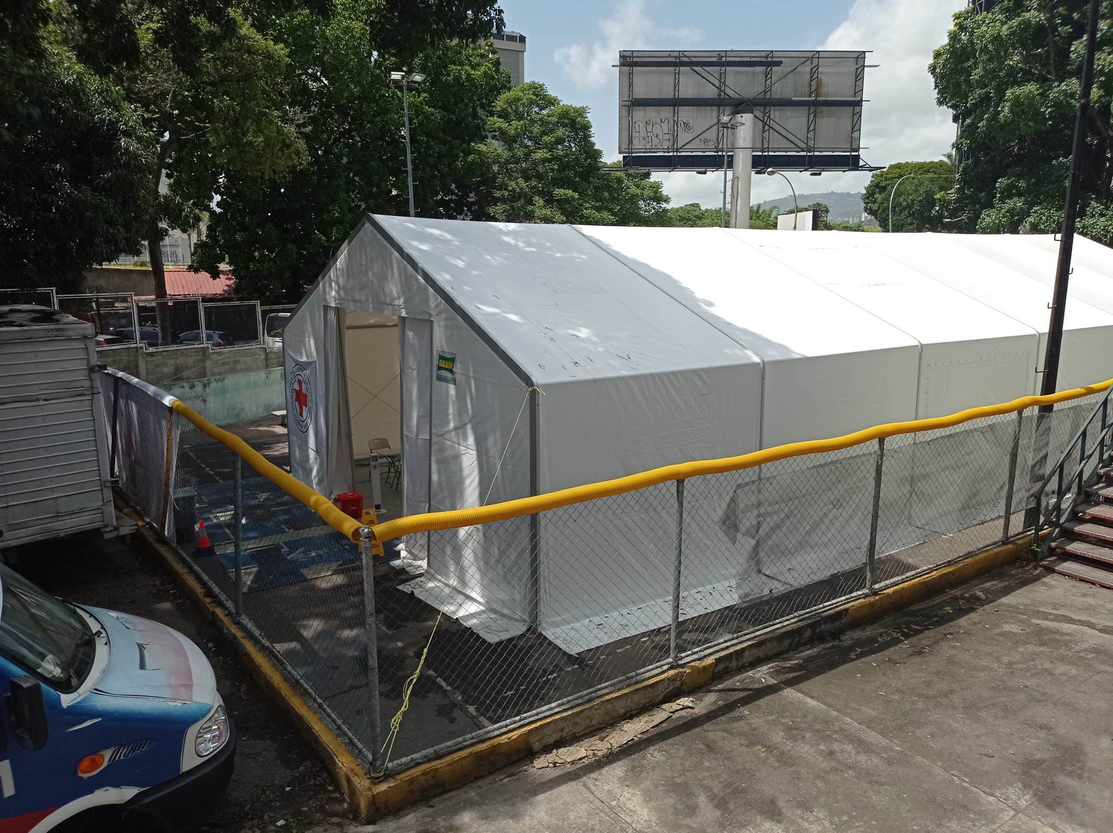 En las áreas abiertas del complejo deportivo Parque Miranda, en Los Dos Caminos, desde hace varios días está instalada una gran carpa blanca de la Cruz Roja, la cual funcionará como un nuevo punto de vacunación contra la COVID-19 en la Gran Caracas. Hasta este martes al mediodía aún no estaba activo. En sus alrededores había funcionarios de la Cruz Roja y trabajadores sanitarios de la Misión Barrio Adentro.