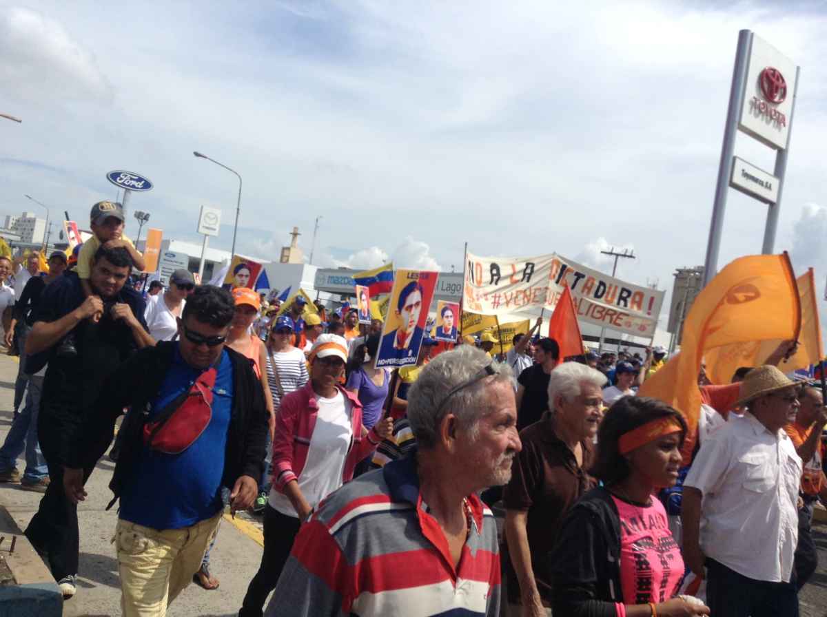 Maracaibo. La manifestación de Zulia dentro de la Toma de Venezuela se desarrolló con regularidad durante el cronograma establecido por la Mesa de la Unidad Democrática (MUD). No obstante, luego de concentrarse en la avenida Delicias con 5 de Julio y marchar hasta la sede de los tribunales, ubicada en la avenida Padilla, los manifestantes decidieron continuar su caminata hasta el Puente sobre el lago.