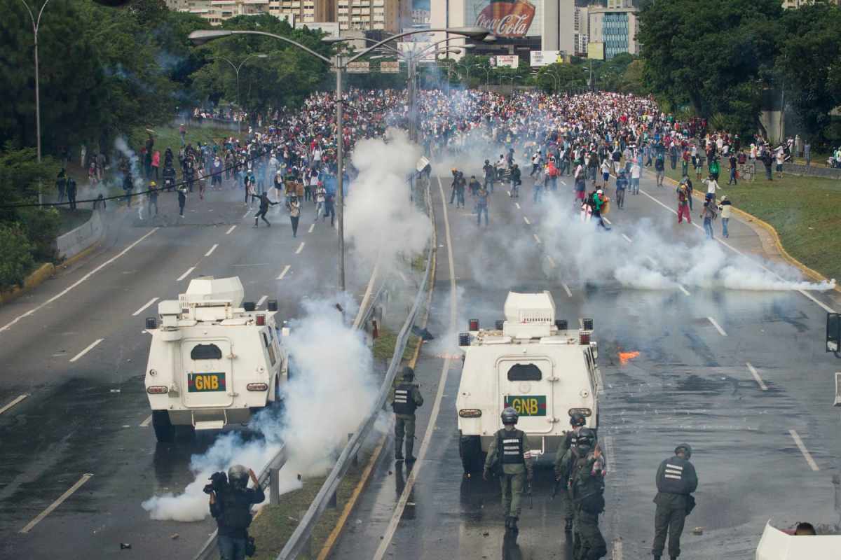 Caracas. El humo de las lacrimógenas y las detonaciones de los perdigones se vieron y escucharon de este a oeste en Caracas. Funcionarios de la Guardia Nacional Bolivariana (GNB) y de la Policía Nacional Bolivariana (PNB) volvieron a reprimir fuertemente a manifestantes opositores durante más de 7 horas impidiéndoles llegar, nuevamente, al centro de la ciudad.
