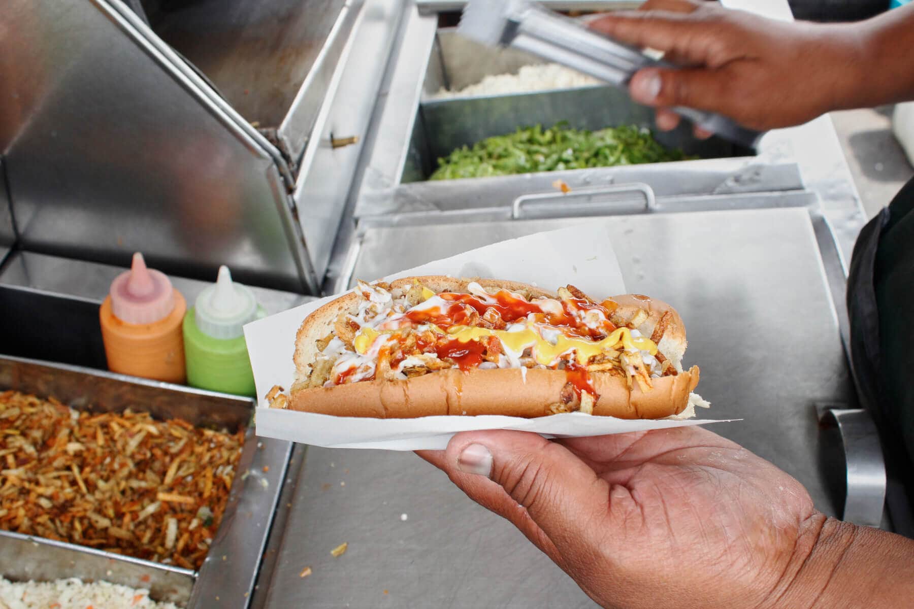 “Mi esposa y yo comenzamos a hacer perros calientes y hamburguesas en la pandemia en nuestra casa, poco a poco el negocio fue creciendo y decidimos comprar un carrito que instalamos en un estacionamiento cercano y nos ha ido bien”.