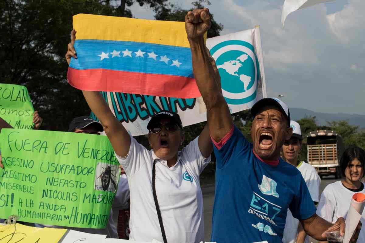 Cúcuta. Consuelo bromea sobre su apellido, “Chávez”. Pero la risa termina cuando dice que es maestra jubilada, tiene 60 años de edad y 42 años de servicio como docente. En enero fue diagnosticada con cáncer en la tiroides, dice que tiene que cuidar sus cuerdas vocales, pero ella grita, otras 60 personas la siguen: “ayuda para Venezuela”.