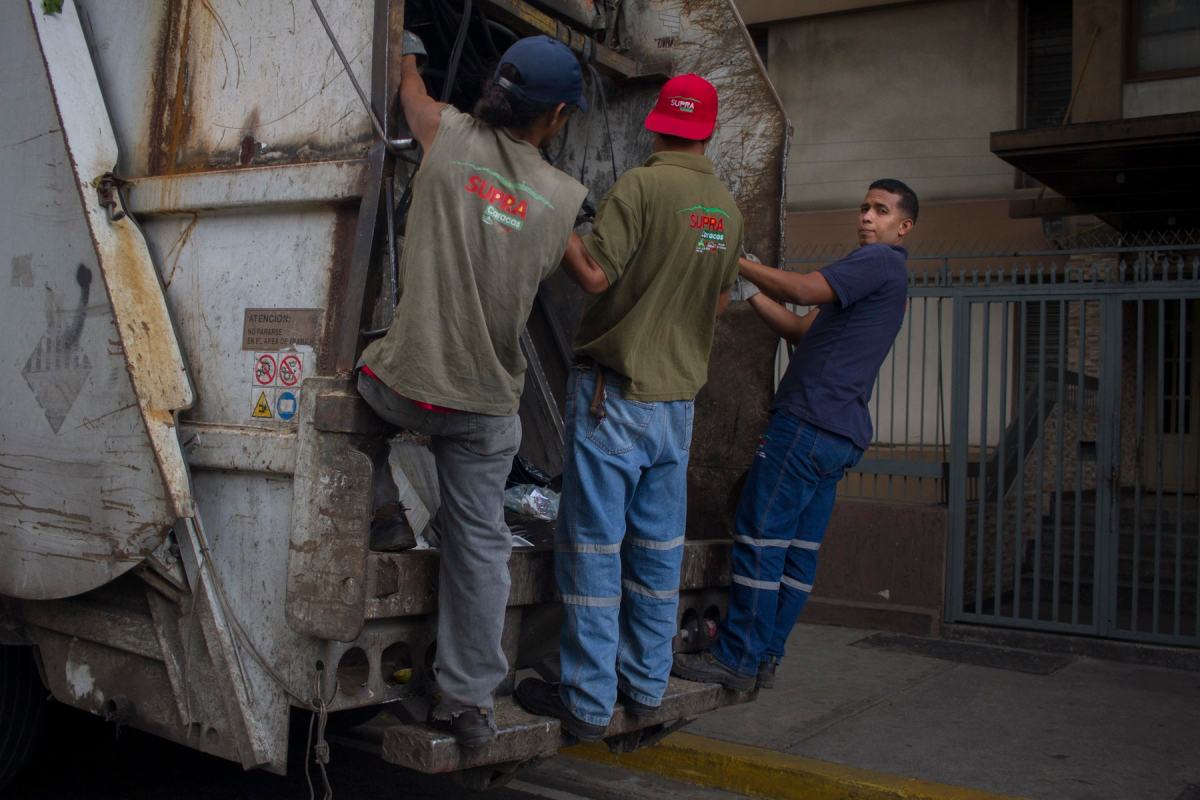 Caracas. Recolectores del aseo urbano trabajan ahora con los ojos bien pelados. Contaron que cuando van a retirar las bolsas o a vaciar los contenedores hasta le piden permiso a las personas que hurgan buscando comida.