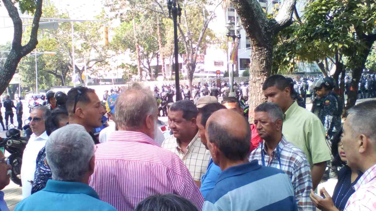 Caracas. Un grupo de dirigentes sindicales acudió este martes al Palacio Federal Legislativo para entregar a los diputados de la Asamblea Nacional un proyecto de ley para garantías laborales y la protección de trabajadores, esto pese a los obstáculos que significaron la Policía Nacional y los grupos de choque del chavismo.