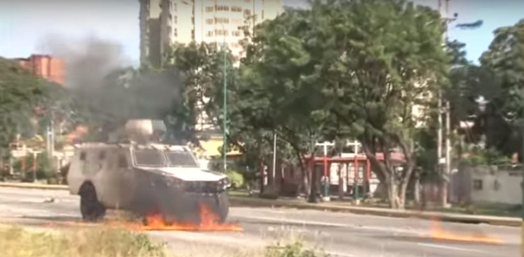 Dos tanquetas del lado venezolano llegaron hasta el punto limítrofe del puente Simón Bolívar de la frontera con Colombia y derribaron las barreras amarillas puestas por autoridades venezolanas.
