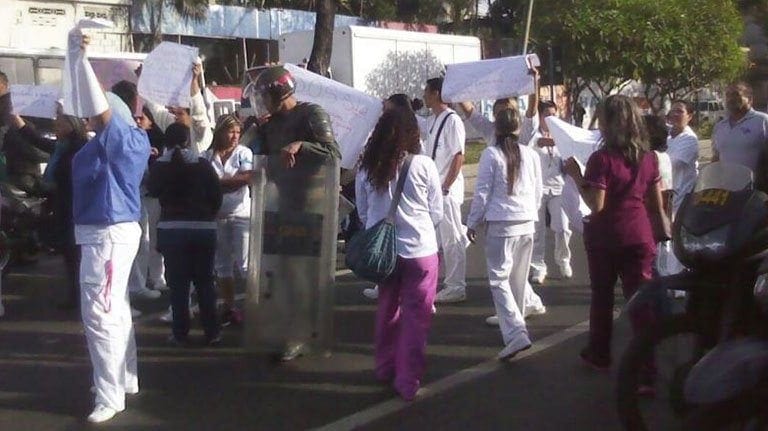 Los trabajadores del sector salud marcharon hasta la sede de ese Ministerio, en Plaza Caracas, donde los esperaban efectivos de la Guardia Nacional que hasta con gases lacrimógenos se encargaron de dispersar la protesta en plena avenida Baralt.