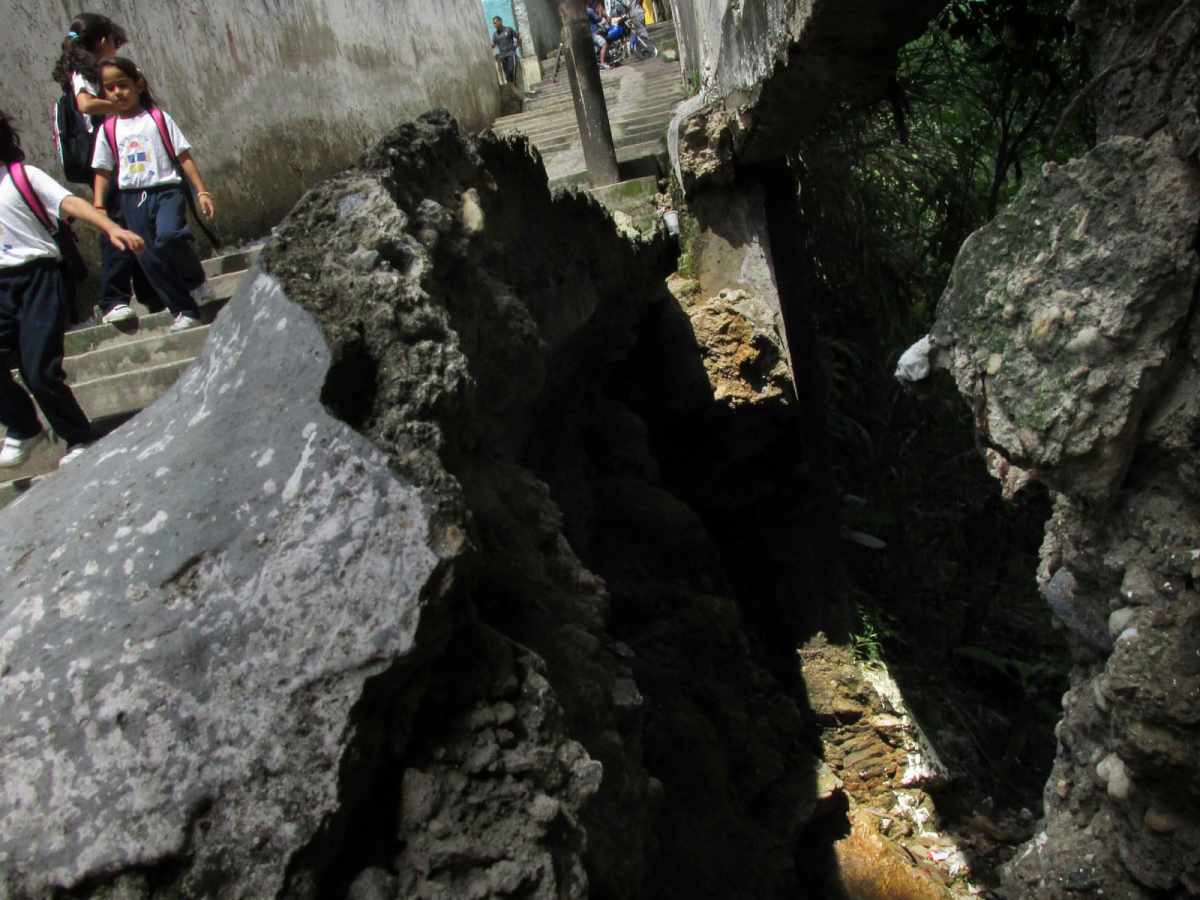 Hace 10 días se vino abajo una parte de la pared. Alrededor hay tuberías de gas que pertenecen a un edificio. En 2011, el Gobierno destinó Bs. 135.671,00 para la recuperación de la estructura, sin embargo, el problema persiste en la actualidad y ha adquirido dimensiones alarmantes.