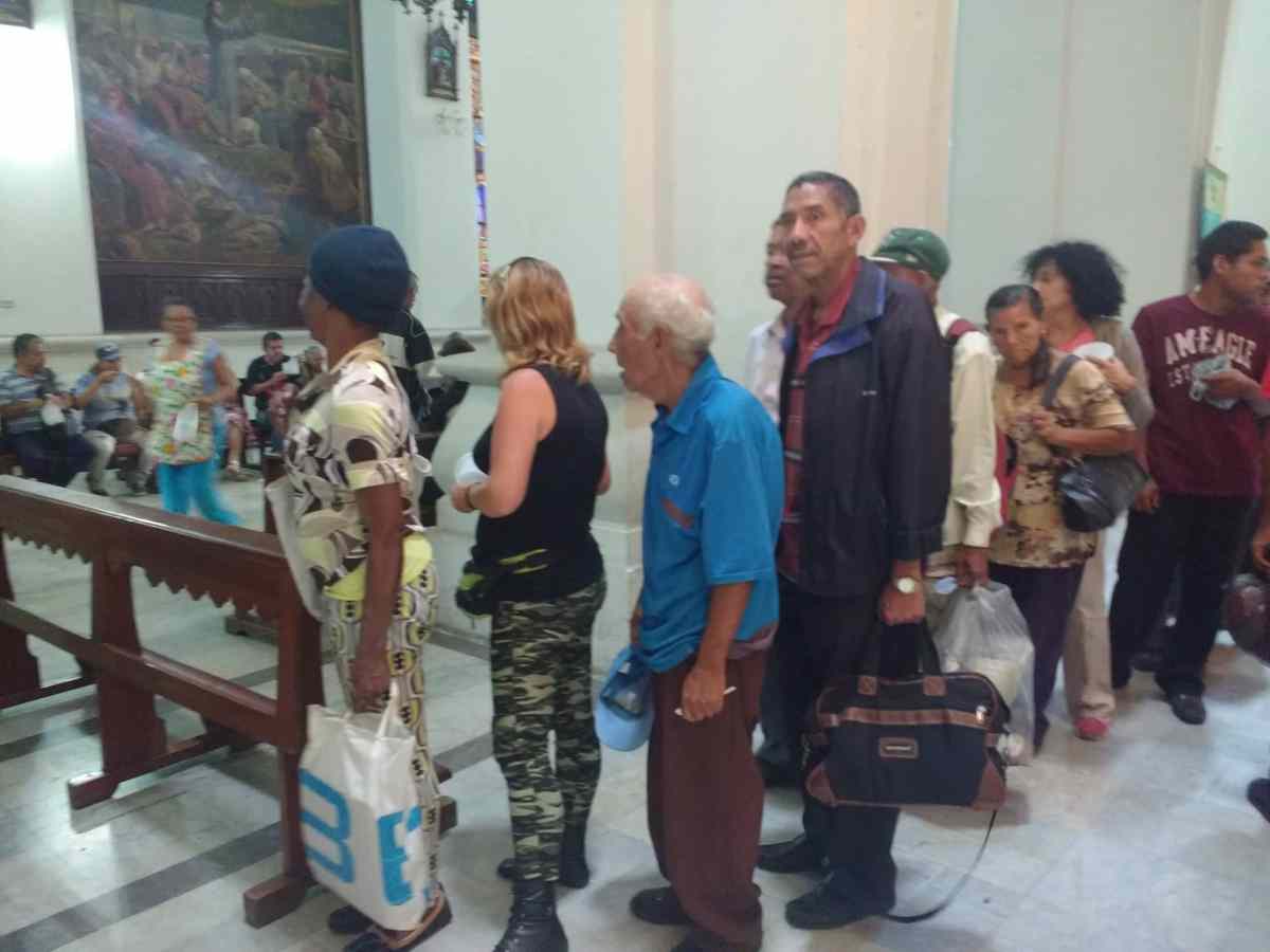 Cerca de 500 personas, ancianos, mujeres con sus niños en brazos, estudiantes y obreros se refugian en la casa de Dios para beneficiarse con un vaso de sopa, quizás el único plato que llevan al estómago ese día.