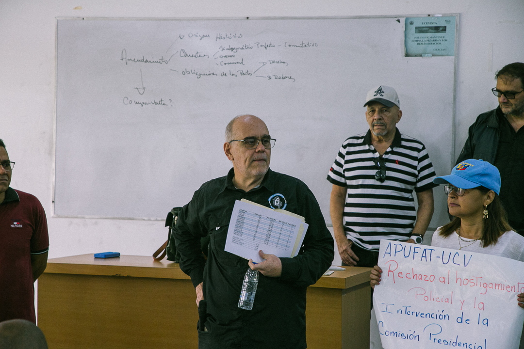 «Esto es un espacio donde debe privar la libertad académica y está reñida con la fuerza. Aquí no puede haber ni uniformes, ni armas», insistió José Gregorio Afonso, presidente de la Asociación de la UCV, en su discurso manifestado en distintas aulas de las facultades.