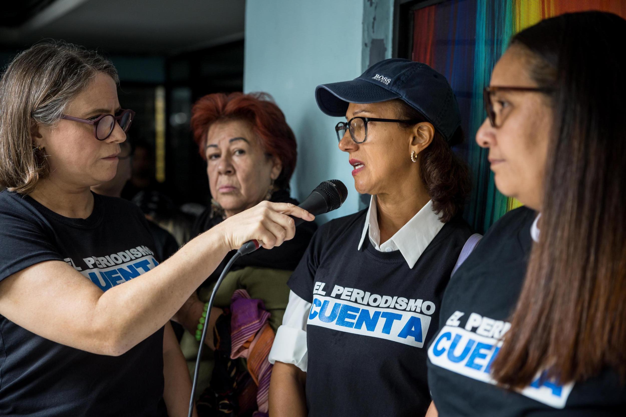 Familiares de varios de los comunicadores y camarógrafos detenidos, reporteros activos, miembros de la Asociación de de Profesores de la Universidad Central de Venezuela (Apucv) y otros representantes de la sociedad civil participaron en el evento y acompañaron el clamor de la prensa venezolana.